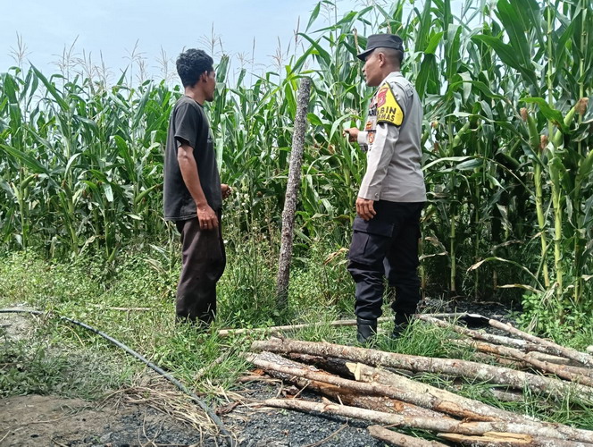 Bripka Musliadi, selaku Bhabinkamtibmas Desa Penosan, menyampaikan bahwa selain melakukan pengecekan, pihaknya juga memberikan edukasi kepada petani terkait perawatan tanaman jagung agar hasil panen lebih optimal.