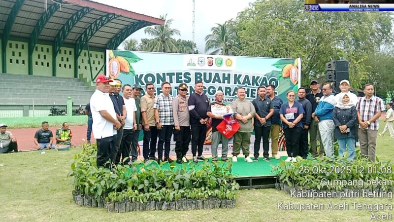 Kutacane – Pemerintah Kabupaten Aceh Tenggara menyambut Hari Sumpah Pemuda dengan menggelar Kontes Kakao Aceh Tenggara Hebat di Lapangan Pemuda, Gumpang Jaya, Kecamatan Babussalam, Minggu (26/10/2025). Acara ini merupakan hasil kerja sama antara Kodim 0108/Aceh Tenggara dan Dinas Pertanian Kabupaten Aceh Tenggara, dengan melibatkan sebanyak 203 petani kakao dari 16 kecamatan. Tujuan utama dari kontes ini adalah untuk mendorong peningkatan mutu kakao lokal serta memperkuat peran petani dalam menjaga ketahanan pangan dan meningkatkan daya saing komoditas unggulan daerah di pasar nasional hingga internasional.
