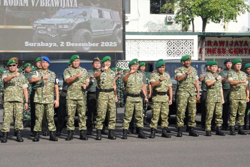 Surabaya — Komandan Korem 083/Baladhika Jaya Kolonel Inf Kohir menghadiri penyerahan Ransus Jeep 4×4 Maung Type Soft Top dan Spartan/Tangguh tahap V hasil pengadaan Kemhan RI Program PDN TA 2022 untuk jajaran Kodam V/Brawijaya. Prosesi berlangsung di Lapangan Ahmad Yani Makodam V/Brawijaya, Selasa (2/12/2025).