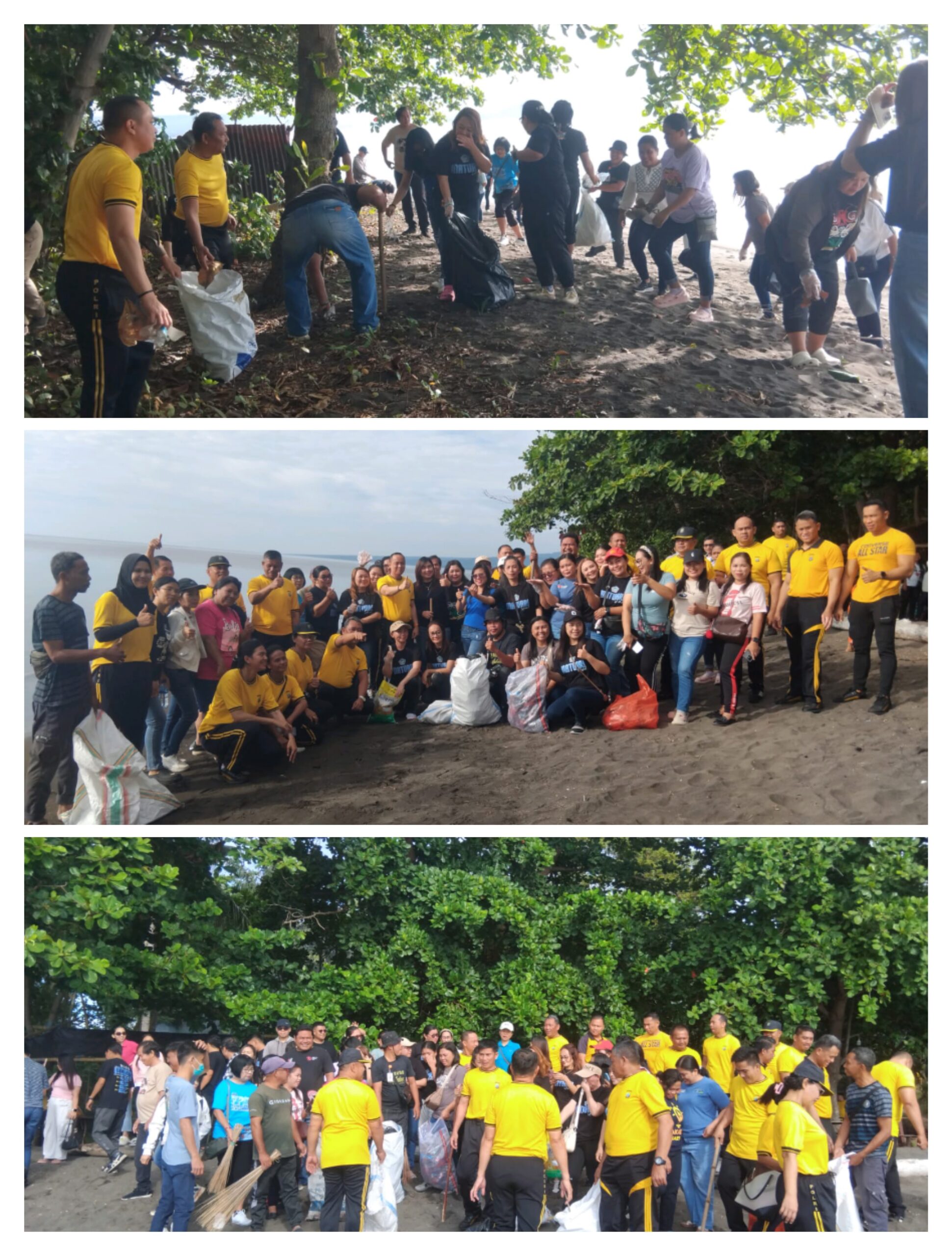 Ratusan peserta kemudian menyisir sepanjang bibir pantai, mengumpulkan sampah plastik dan limbah lainnya. Semangat gotong royong tampak begitu kuat, mencerminkan kebersamaan antara kepolisian, pemerintah kecamatan, kelurahan, dan warga.