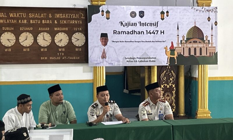 Batubara – Pembukaan Kajian Intensif Ramadhan 1447 H resmi digelar di Lapas Kelas IIA Labuhan Ruku sebagai bagian dari program pembinaan kepribadian bagi Warga Binaan Pemasyarakatan (WBP), Selasa (3/3). Kegiatan ini menjadi momentum untuk meningkatkan keimanan dan ketakwaan warga binaan selama bulan suci Ramadhan.