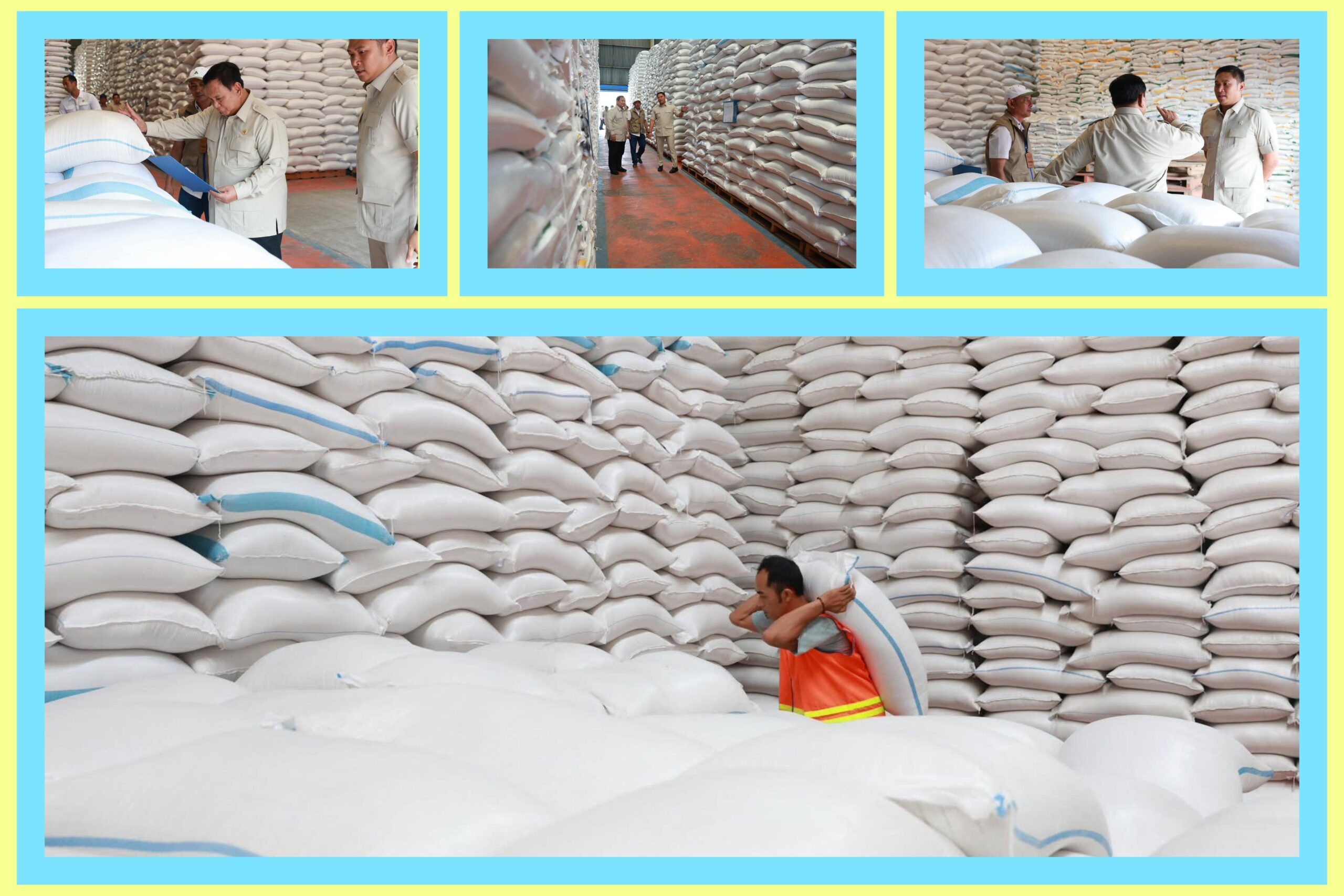 Presiden meninjau langsung kondisi penyimpanan beras di dalam gudang. Ia memastikan kualitas beras yang disimpan tetap terjaga dengan baik dan memenuhi standar untuk dikonsumsi masyarakat.