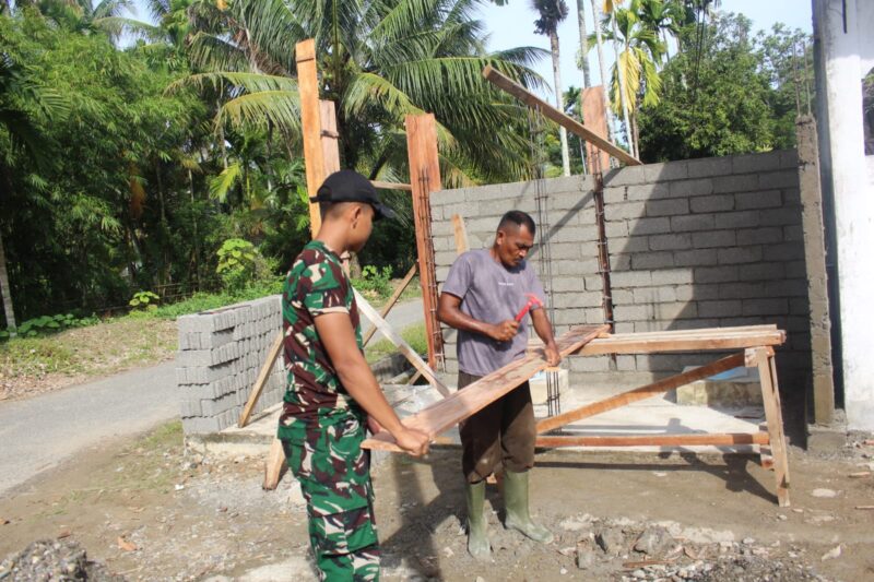Salah satu sasaran yang tengah dikebut yakni perehaban Rumah Tidak Layak Huni (RTLH). Dalam proses pengerjaannya, tampak personel TNI dan warga saling bahu-membahu, mulai dari penyusunan batako hingga pengerjaan dinding rumah.