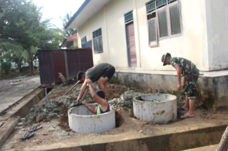 Dalam kegiatan tersebut, personel Satgas TMMD bersama warga terlihat bahu-membahu mengerjakan pembangunan MCK, mulai dari penggalian hingga pemasangan konstruksi beton. Semangat gotong royong menjadi kunci utama dalam mempercepat penyelesaian pekerjaan di lapangan.
