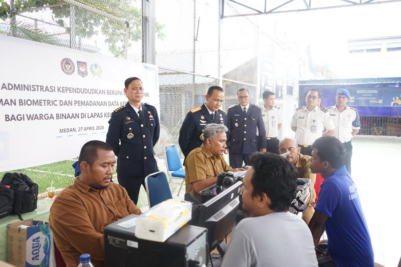 MEDAN | Dalam rangka memperingati Hari Bakti Pemasyarakatan (HBP) ke-62 Tahun 2026, Lembaga Pemasyarakatan (Lapas) Kelas I Medan menghadirkan pelayanan Administrasi Kependudukan bagi Warga Binaan Pemasyarakatan (WBP), Senin (27/4).
